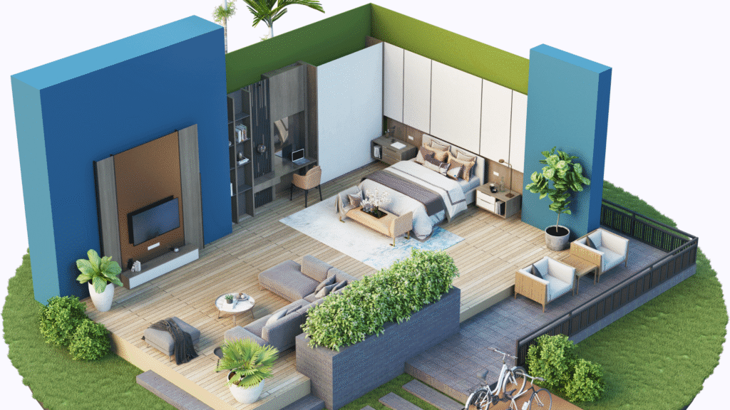 - Offices: Acoustic panels and modular furniture help separate work zones.
